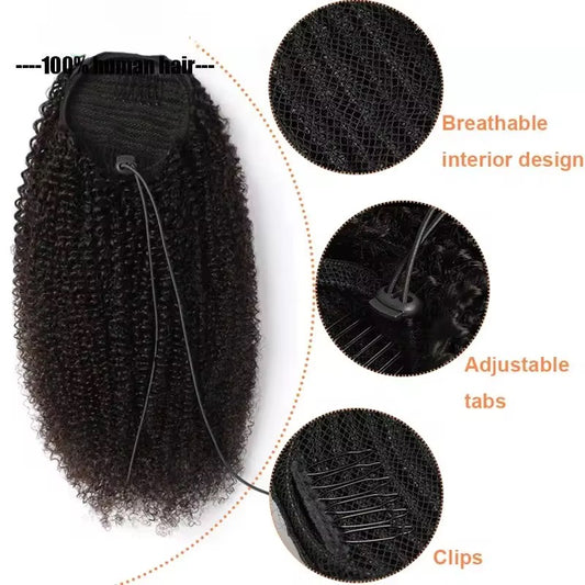 Finesse Luxury Wig - Afro Kinky Curly Ponytail Human Hair ✨