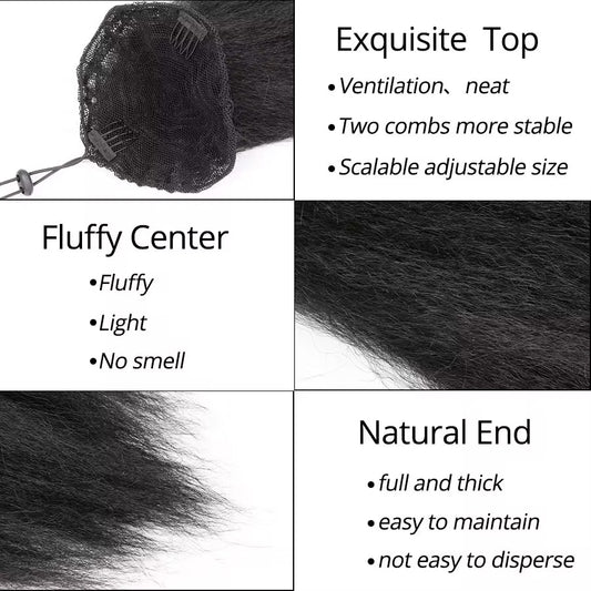 Finesse Luxury Wig - Kinky Straight Drawstring Ponytail Human Hair ✨